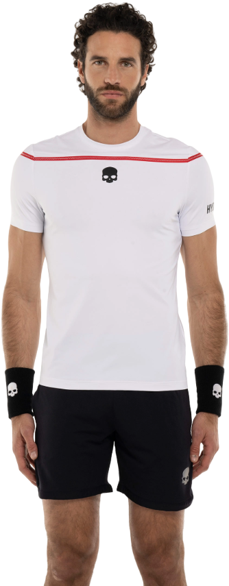 Белая футболка Hydrogen с эффектом красной ленты из полиамидного трикотажа. Дышащая ткань сохраняет спортсменов сухими, обеспечивая при этом максимальную свободу движений.